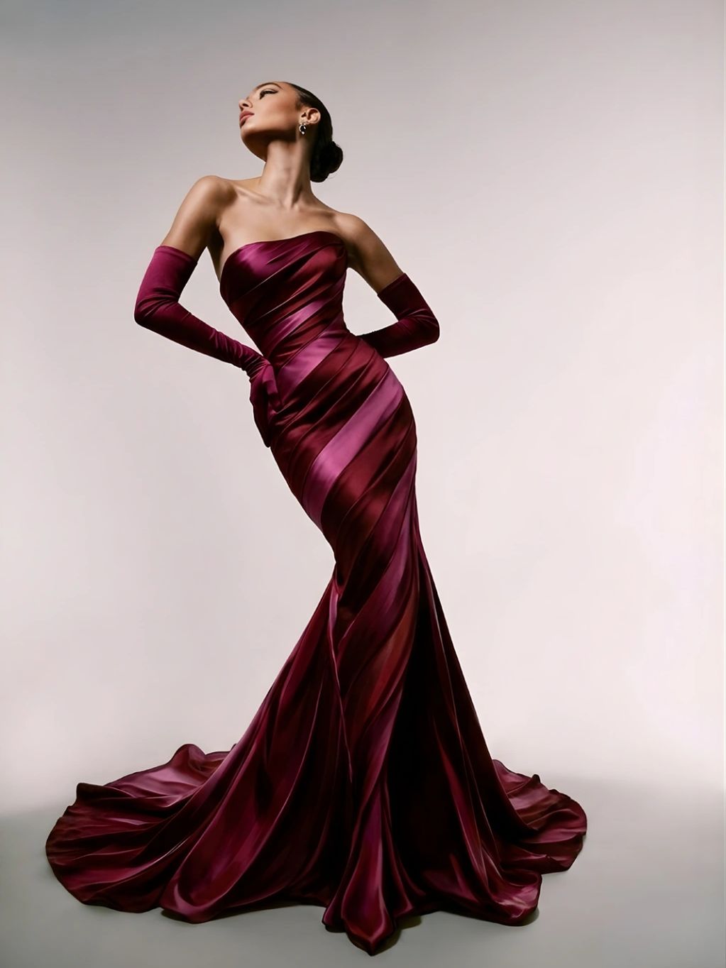 Silk curves around the body like a quiet force,